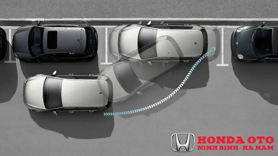 • Tiếp tục lùi và quan sát camera lùi hoặc cảm biến lùi (đặc biệt hữu dụng trên các xe Honda có camera 3 góc quay) cho đến khi thân xe song song với lề đường.