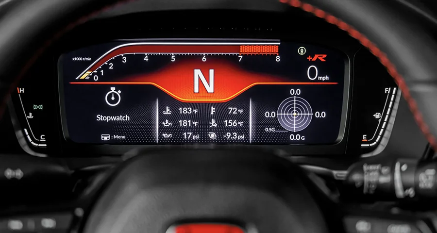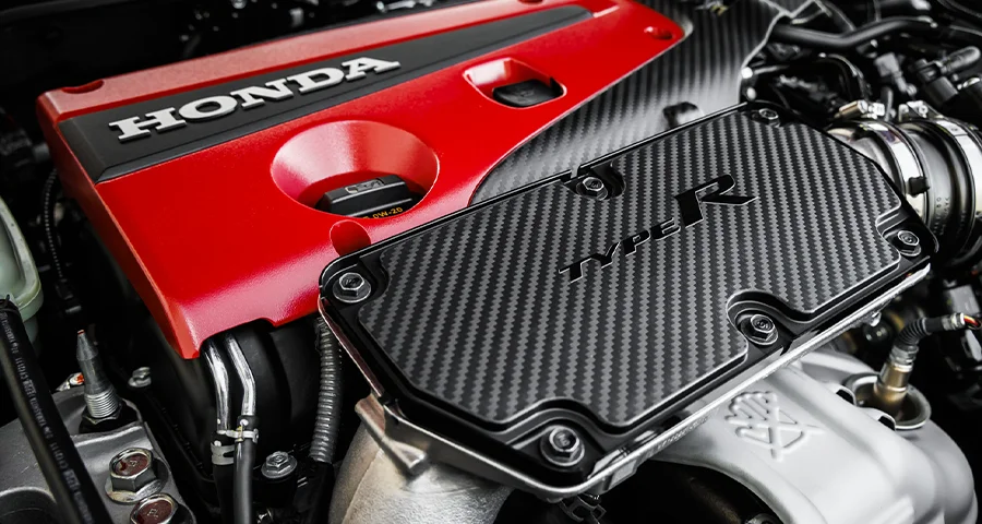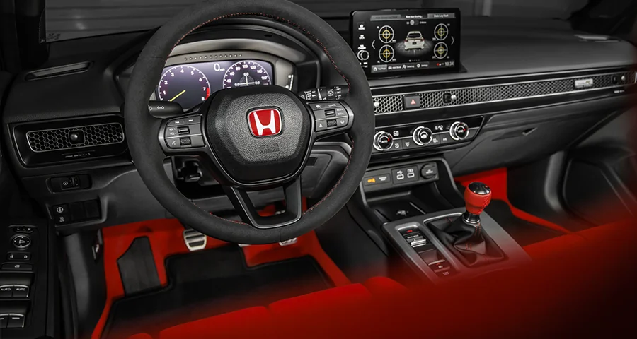 Mặt ca-lăng đặc trưng: Mặt trước xe gây ấn tượng mạnh với lưới tản nhiệt tổ ong mở rộng giúp tối ưu khả năng làm mát động cơ. Logo chữ H trên nền đỏ rực rỡ – linh hồn của dòng Type R – được đặt trang trọng chính giữa.
