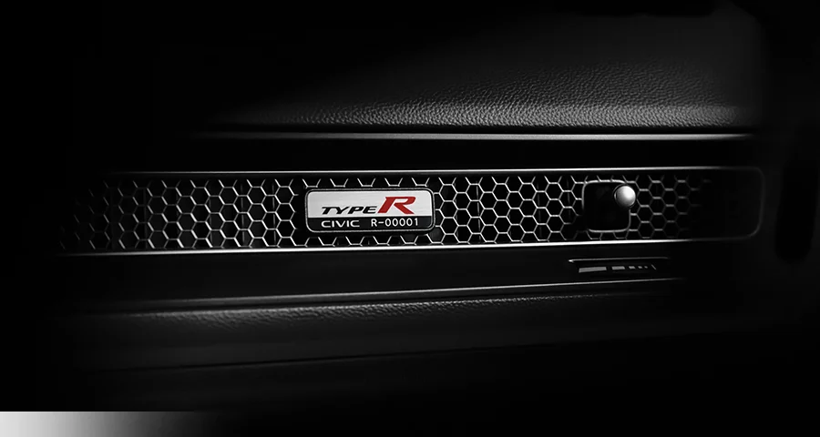 - Tấm biển số Se-ri: Mỗi chiếc Honda Civic Type R là độc nhất vô nhị với một tấm bia đánh số thứ tự xuất xưởng riêng biệt đặt trên lưới điều hòa – niềm tự hào của chủ sở hữu.