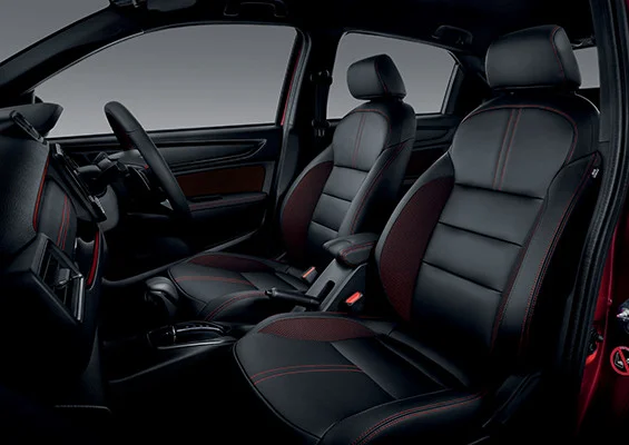 Ghế da pha nỉ với đường chỉ khâu đỏ: Thiết kế ghế ngồi hiện đại, kết hợp hài hòa giữa chất liệu bền bỉ và độ êm ái, tạo cảm giác dễ chịu trong suốt hành trình dài mà vẫn giữ được nét thẩm mỹ tinh tế.